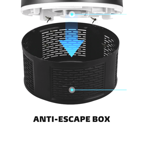 Our Mosquito Trap is equipped with LED Bionic Violet Wave that is strong enough to attract bugs, a high powered suction fan to pull them into the trap and an anti-escape box for effective bug elimination.